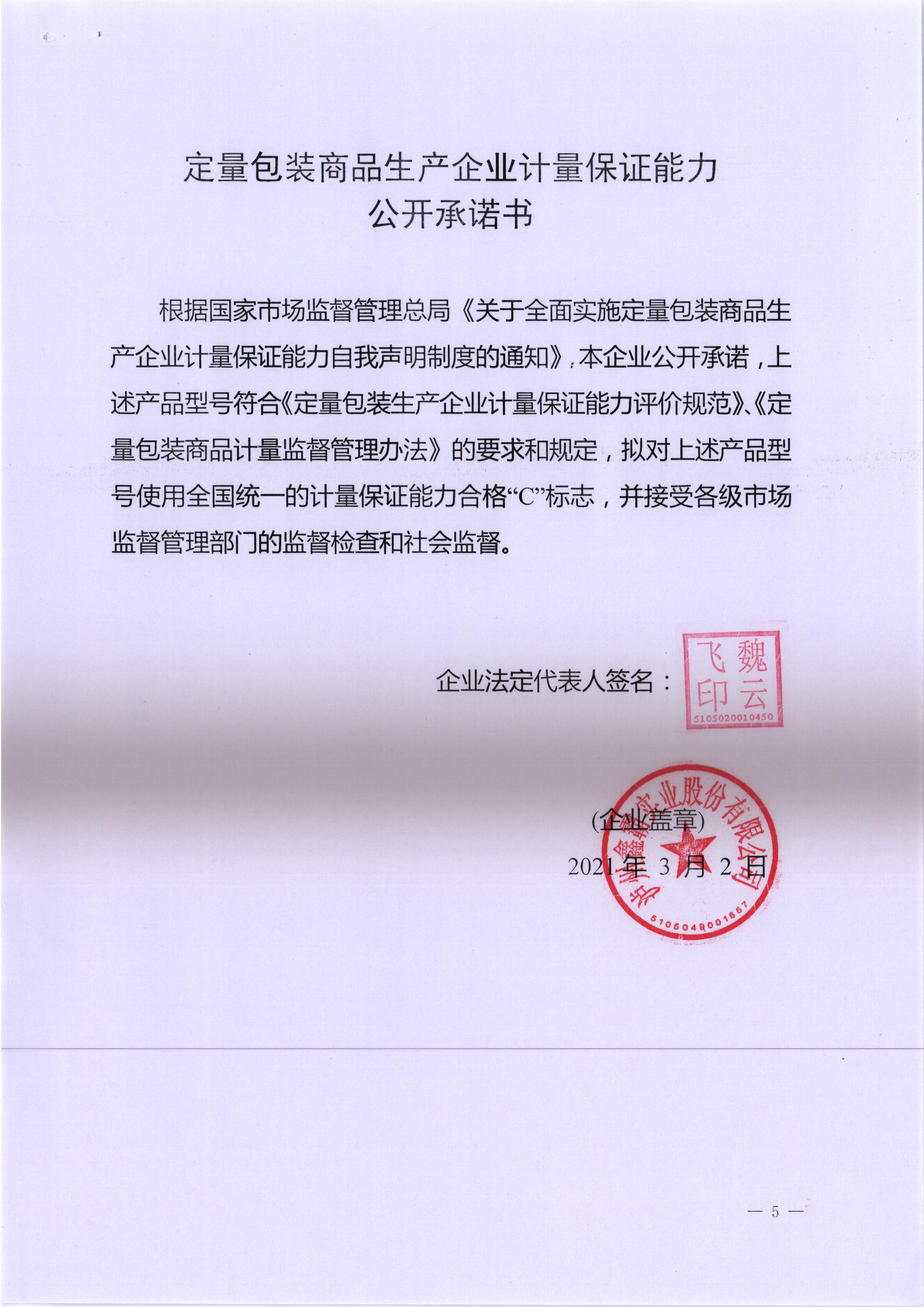 四川省定量包裝商品生產(chǎn)企業(yè)計量保證能力自我聲明