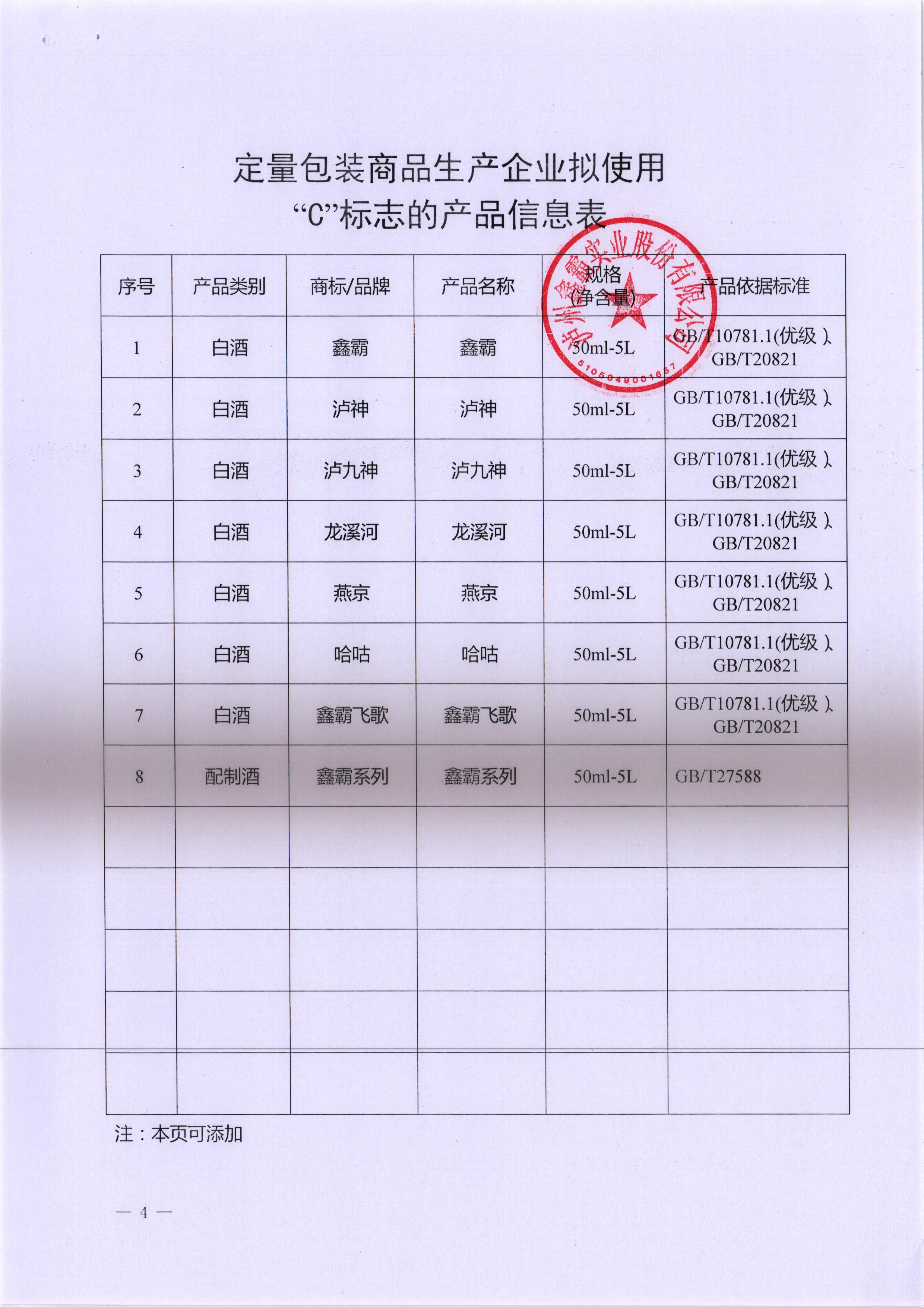 瀘州鑫霸實業(yè)股份有限公司